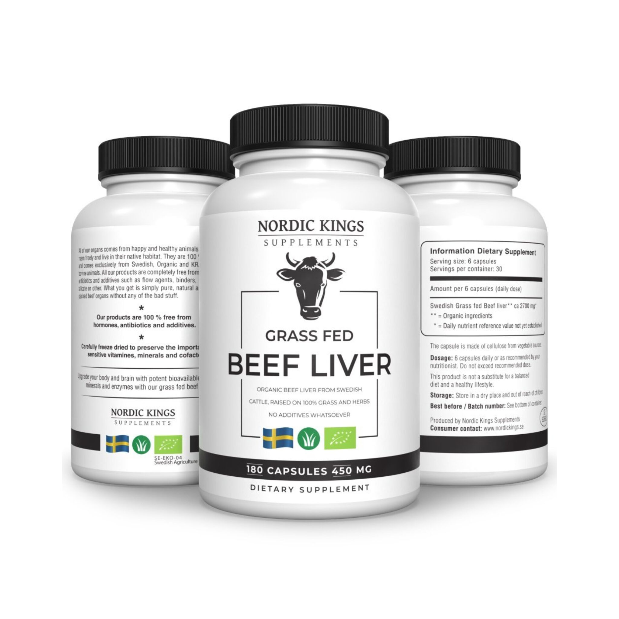 Our grass-fed beef liver offers a naturally rich profile of vital nutrients, including Vitamin A (Retinol) in its most usable form, CoQ10, beta carotene, bioavailable heme iron, Vitamin B12, choline, and folate. It also contains key liver-specific peptides, cofactors, and enzymes, along with fat-soluble vitamins A, D, K, and E, paired with their natural cofactors to significantly enhance nutrient absorption. This organ meat provides high-quality, easily absorbed minerals such as copper, zinc, and chromium, as well as B vitamins like B6, riboflavin (B2), and pantothenic acid (B5). Sourced from Swedish organic and KRAV-certified animals raised exclusively on grass and herbs, our beef liver is 100% freeze-dried, allergen-free, and produced without grains, growth hormones, antibiotics, or pesticides. Known for its exceptional nutrient density, beef liver delivers one of the most complete and bioavailable combinations of vitamins, minerals, and enzymes available from any food source.
