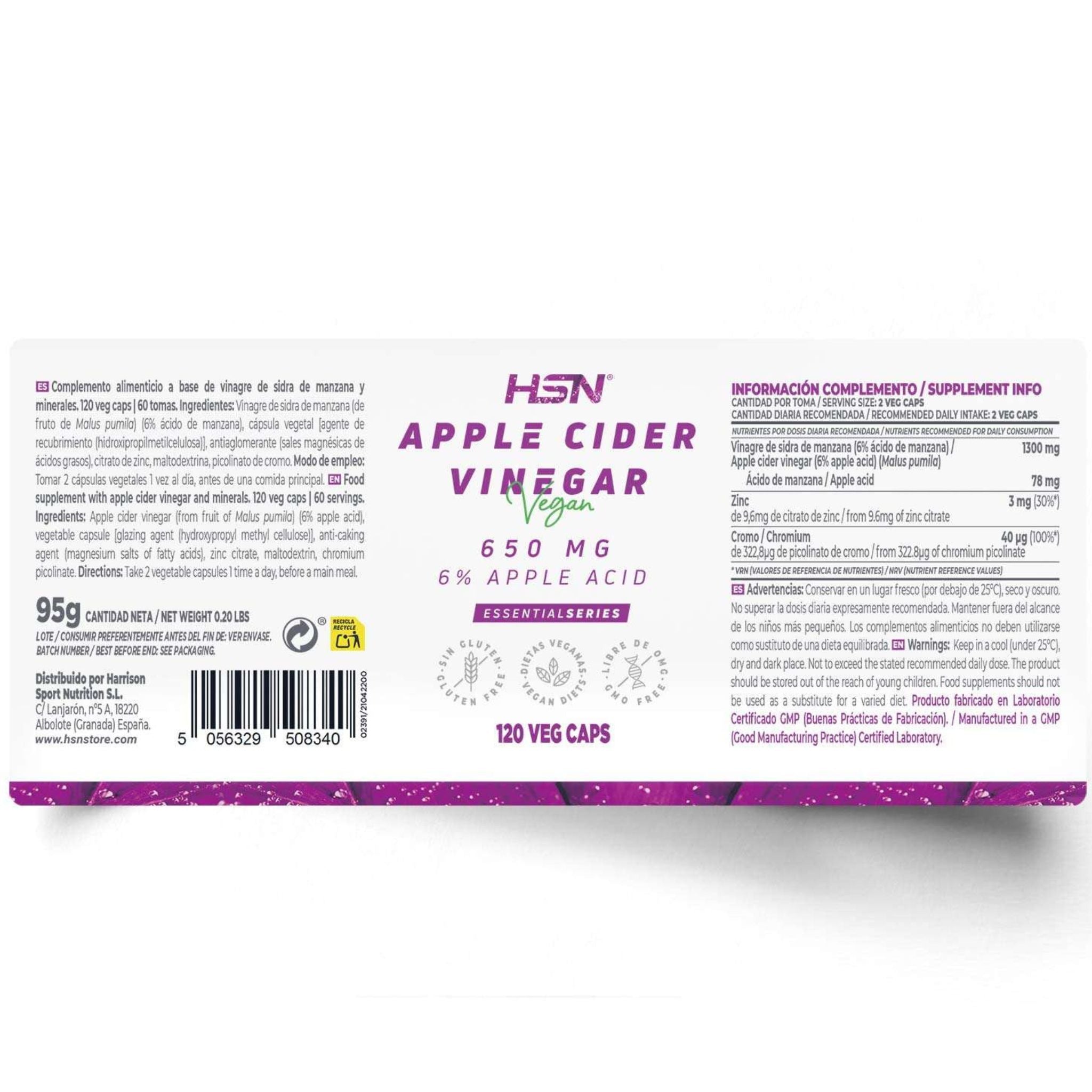 Apple cider vinegar (from fruit of Malus pumila, 6% apple acid), vegetable capsule [glazing agent (hydroxypropyl methyl cellulose)], anti-caking agents (magnesium salts of fatty acids), zinc citrate, maltodextrin, chromium picolinate.