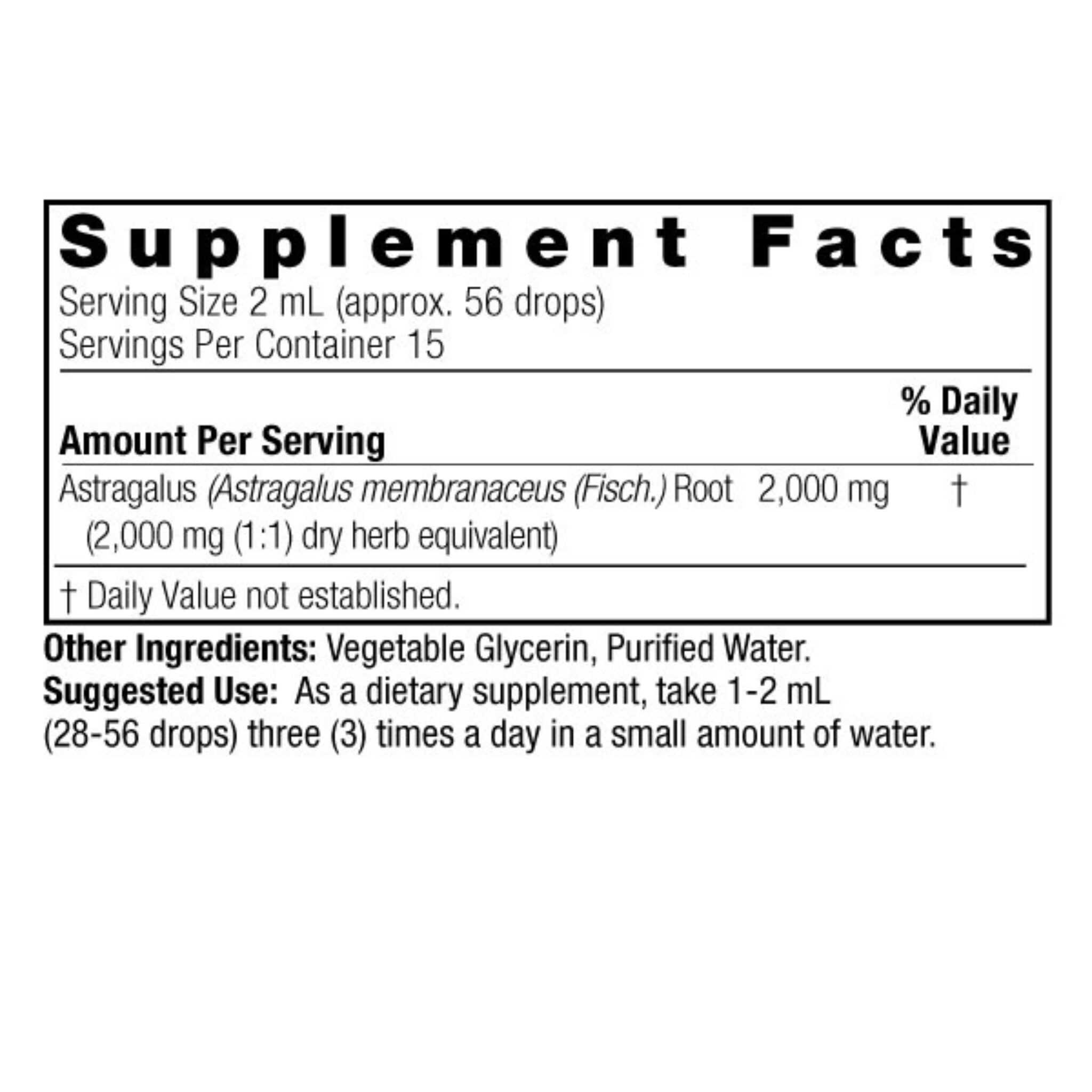 As a dietary supplement: Take 1-2ml (28-56 drops) of Natures Answer Astragalus Root 30ml three times a day in a small amount of water.