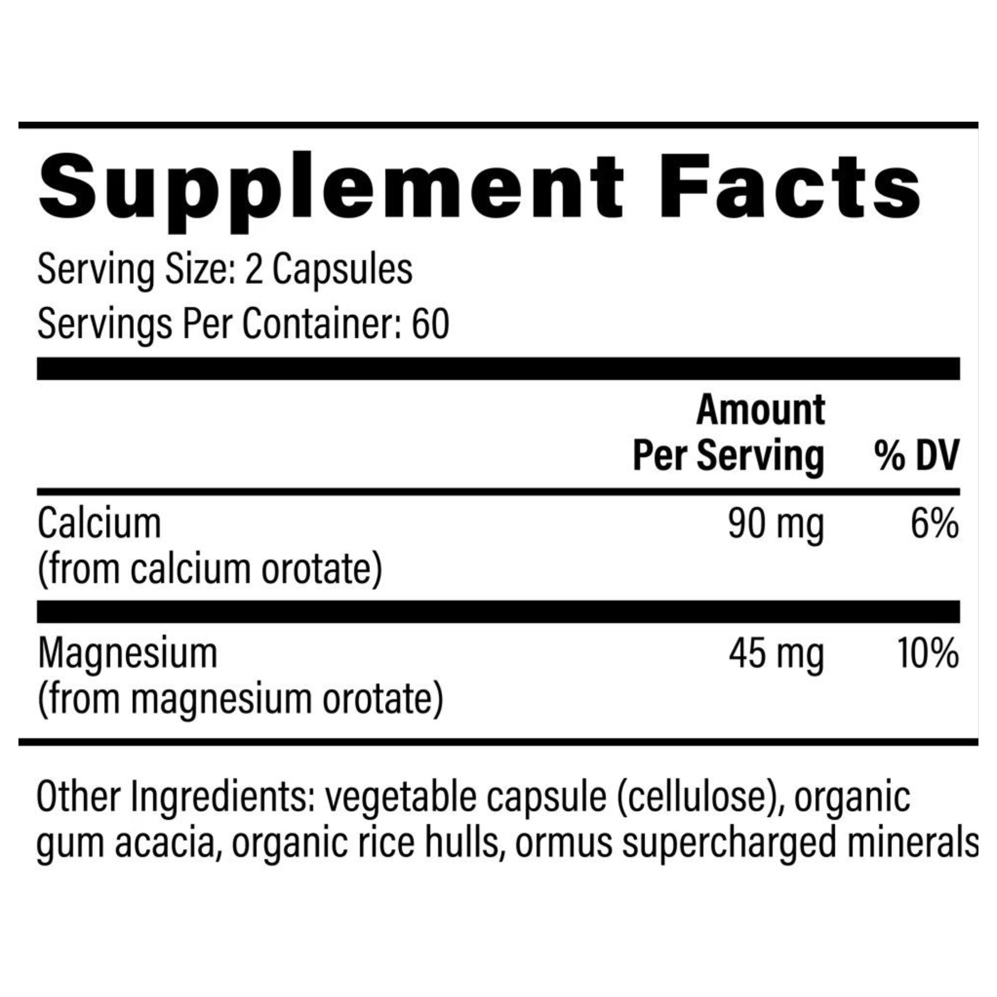 Calcium (from calcium orotate), Magnesium (from magnesium orotate)
