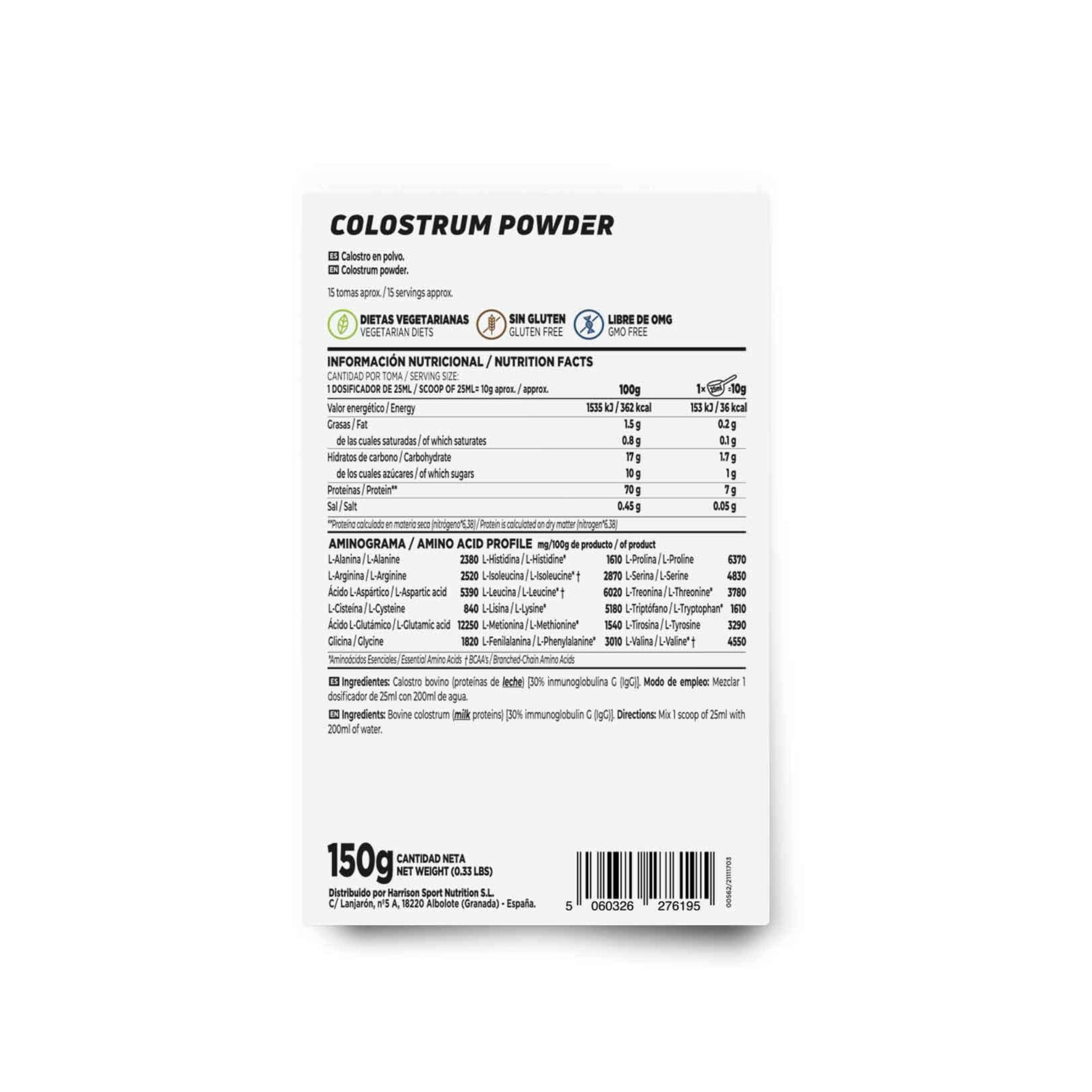 Bovine colostrum (milk proteins) [30% immunoglobulin G (IgG)].