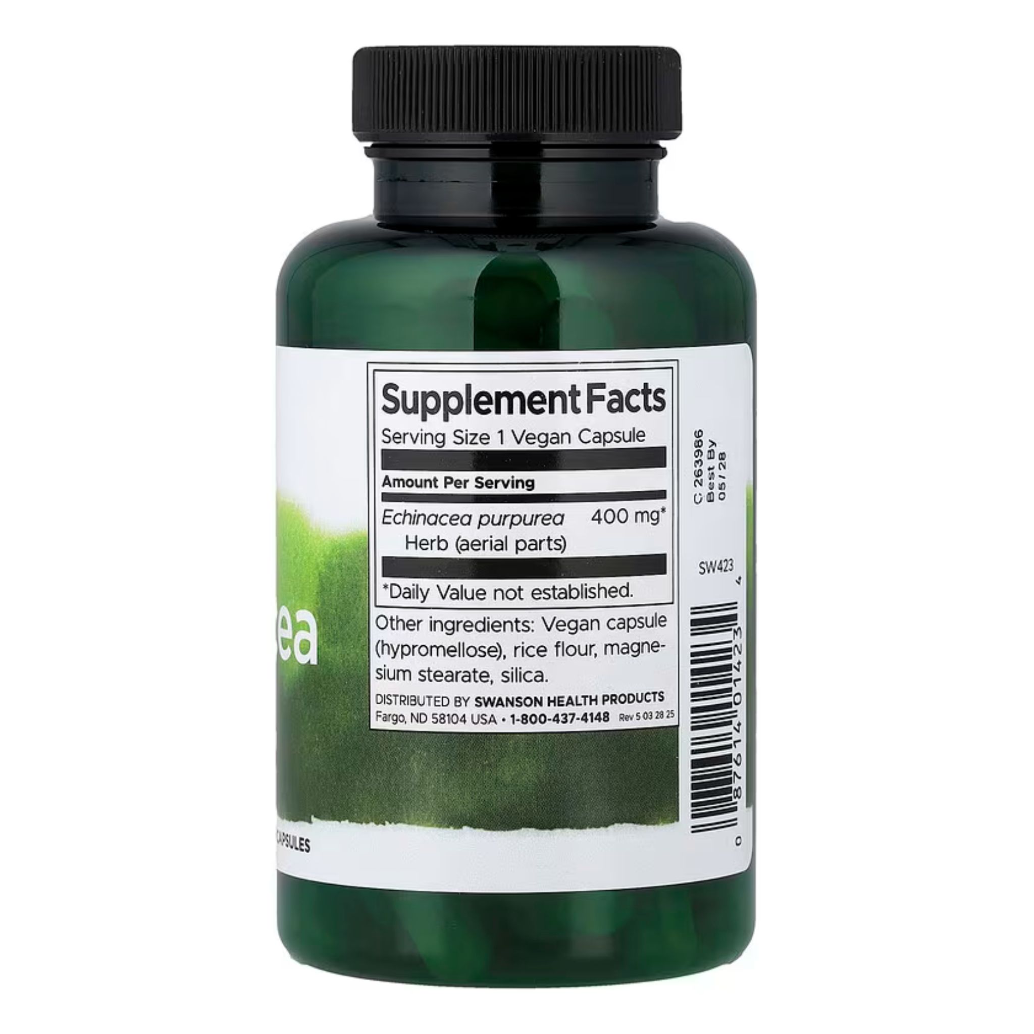 Support your body’s natural resilience with time-honored Echinacea from Swanson! Also known as the purple coneflower, this vibrant botanical is packed with naturally occurring antioxidants and has been valued for centuries for everyday immune support. Recognized by its spiky center and purple petals, echinacea contains beneficial polysaccharides, alkamides, and flavonoids that help promote overall vitality, seasonal comfort, and cellular protection from everyday oxidative stress. It’s also traditionally used to support upper respiratory comfort and to help the body adapt during times of environmental or lifestyle challenges. Each convenient capsule delivers 400 mg of echinacea, making it an easy way to add this trusted herb to your daily routine.
