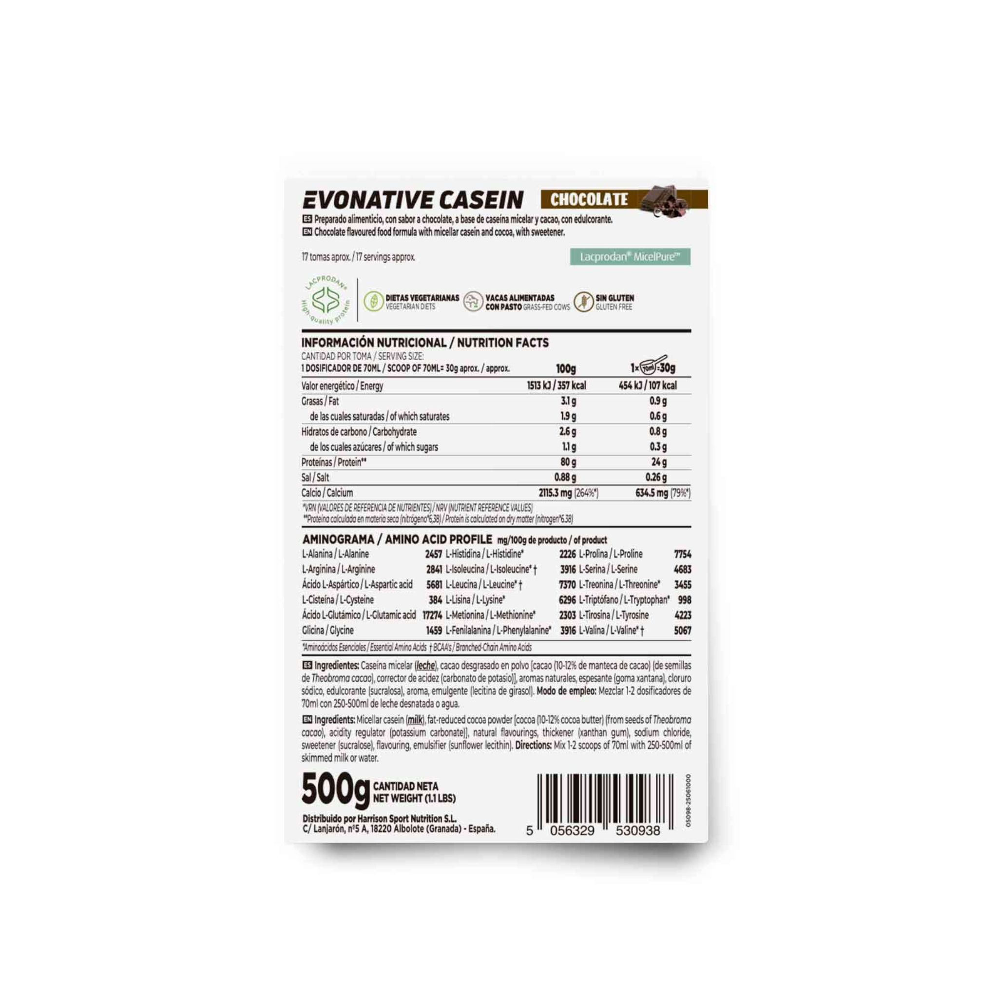 Evonative Casein is a premium protein option designed for those who want quality, convenience, and great taste in one product. Packed with high protein while keeping sugar and fat low, it helps support muscle growth, muscle maintenance, and normal bone function. Made with Lacprodan® MicelPure™ from Arla Food Ingredients, this native micellar casein is produced through a gentle process that preserves the protein’s natural structure and integrity. The milk used comes from grass-fed cows, adding extra nutritional value to every serving. Thanks to sunflower lecithin, it mixes instantly into a smooth, creamy shake without lumps—no shaker struggle required—and it’s completely free from soy allergens. Whether you’re looking to reach your daily protein target, enjoy a creamy shake before bed, or have a convenient high-protein option between meals or while traveling, Evonative Casein makes it easy, practical, and delicious.