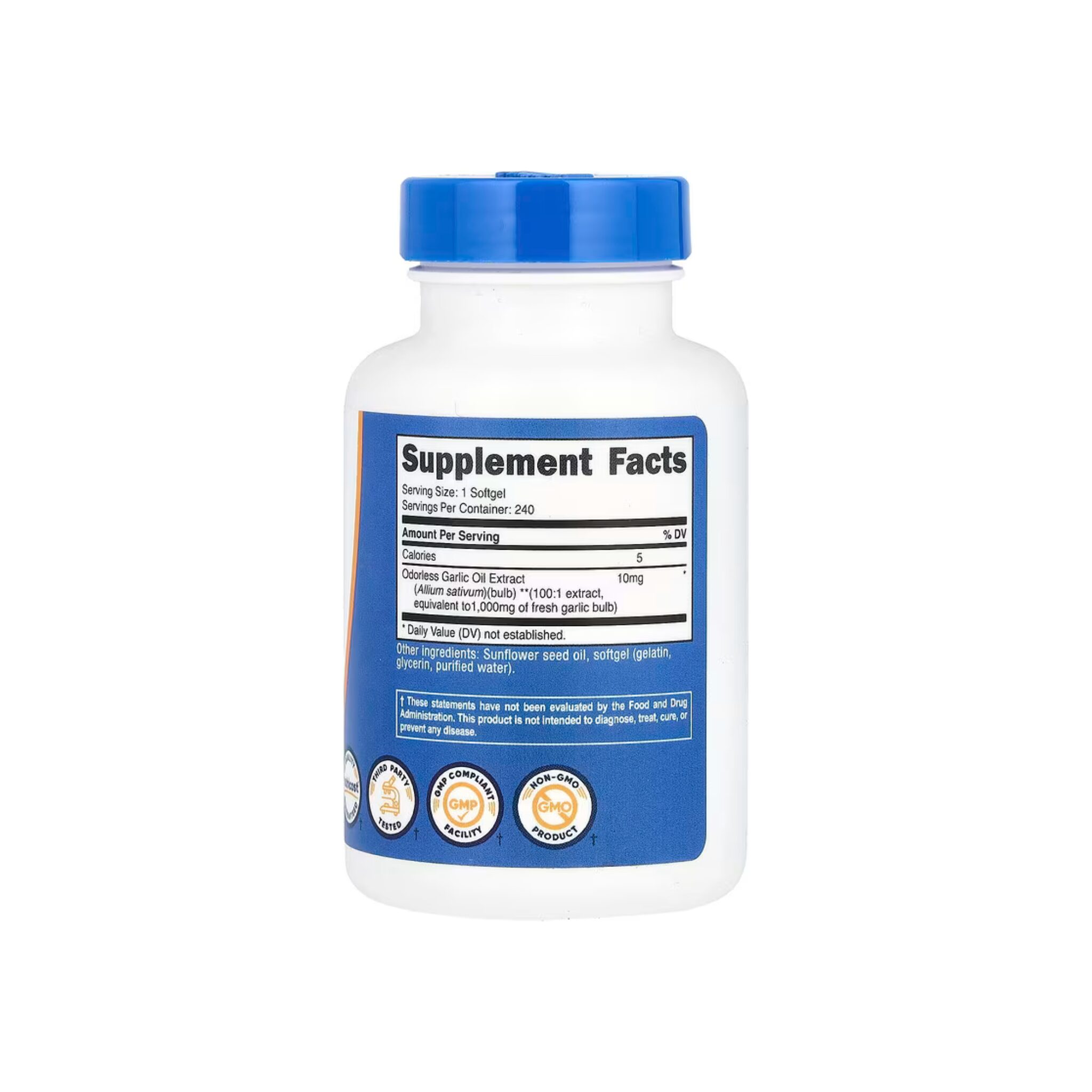 Garlic (Allium sativum)Â standardized to 1000 mg per serving, are valued for supporting cardiovascular, immune, and metabolic functions. They may modestly lower total and LDL cholesterol, reduce systolic and diastolic pressure, and improve blood flow by enhancing endothelial function and reducing arterial stiffness. Garlic also possesses natural antimicrobial and antiviral properties, potentially helping the body combat common colds and infections by boosting immune cell activity. Additionally, it may improve insulin sensitivity, modestly lower fasting blood sugar, and support better lipid profiles while providing antioxidant and anti-inflammatory compounds like allicin and S-allyl cysteine, which protect against oxidative stress and aging-related damage.