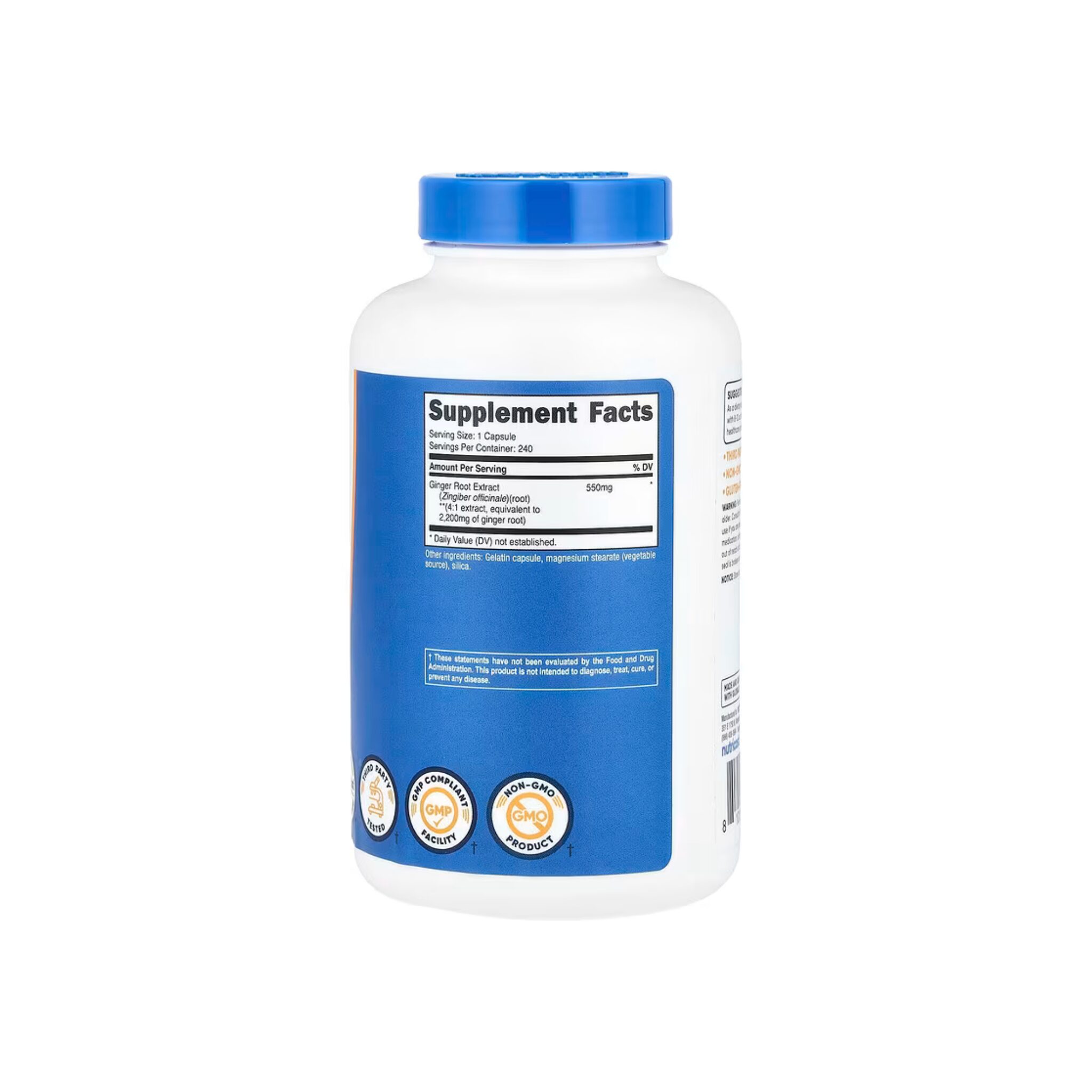 Ginger root extract 2,200 mg, is known for its wide-ranging supportive properties. It is commonly used for digestive comfort, helping to reduce nausea, motion sickness, and upset stomach by calming the gastrointestinal tract and promoting healthy digestion. It may also support joint and muscle function due to its natural anti-inflammatory compounds like gingerols, which can reduce soreness, stiffness, and discomfort. Additionally, ginger has antioxidant properties, helping to counteract oxidative stress and support overall cellular function. Some studies suggest it may aid circulation and support normal blood sugar regulation, while also contributing to a sense of energy and vitality. At this higher dose, effects tend to be more pronounced, though mild gastrointestinal discomfort or heartburn can occasionally occur.