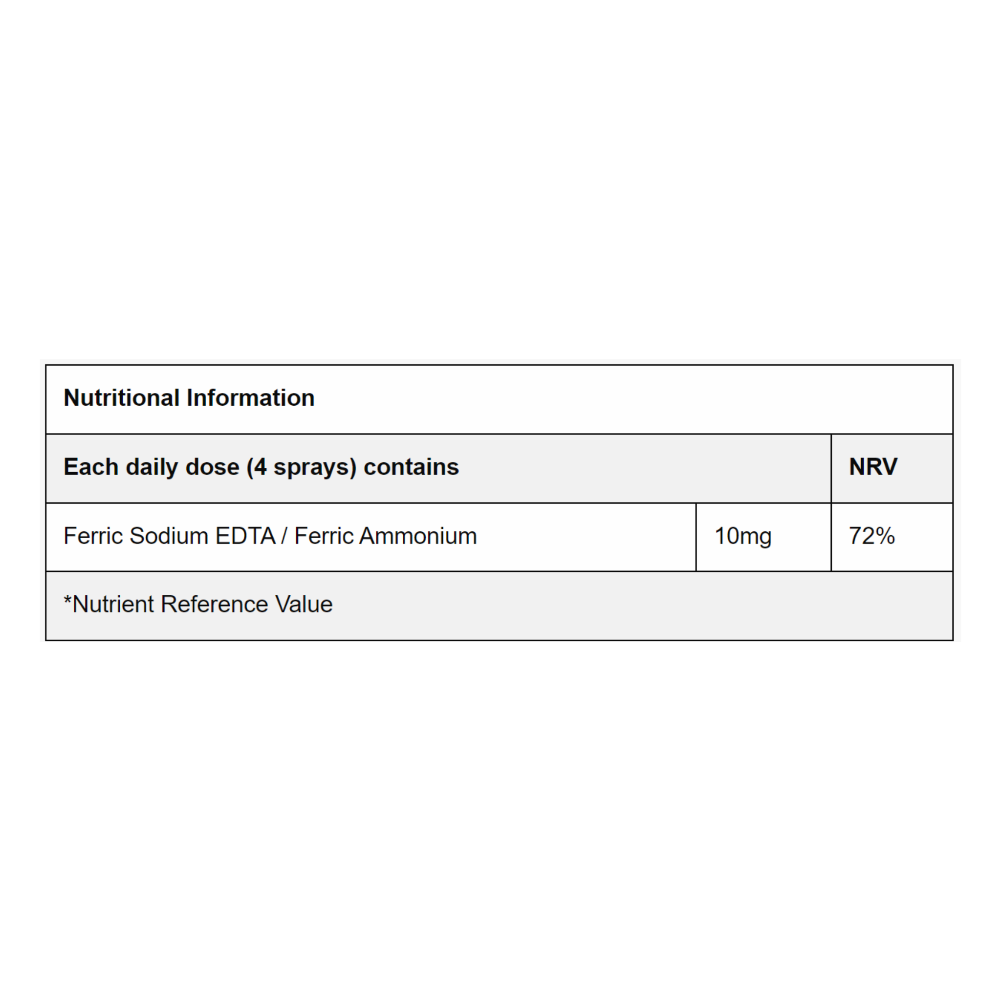 4 spray contains 10mg of iron.
