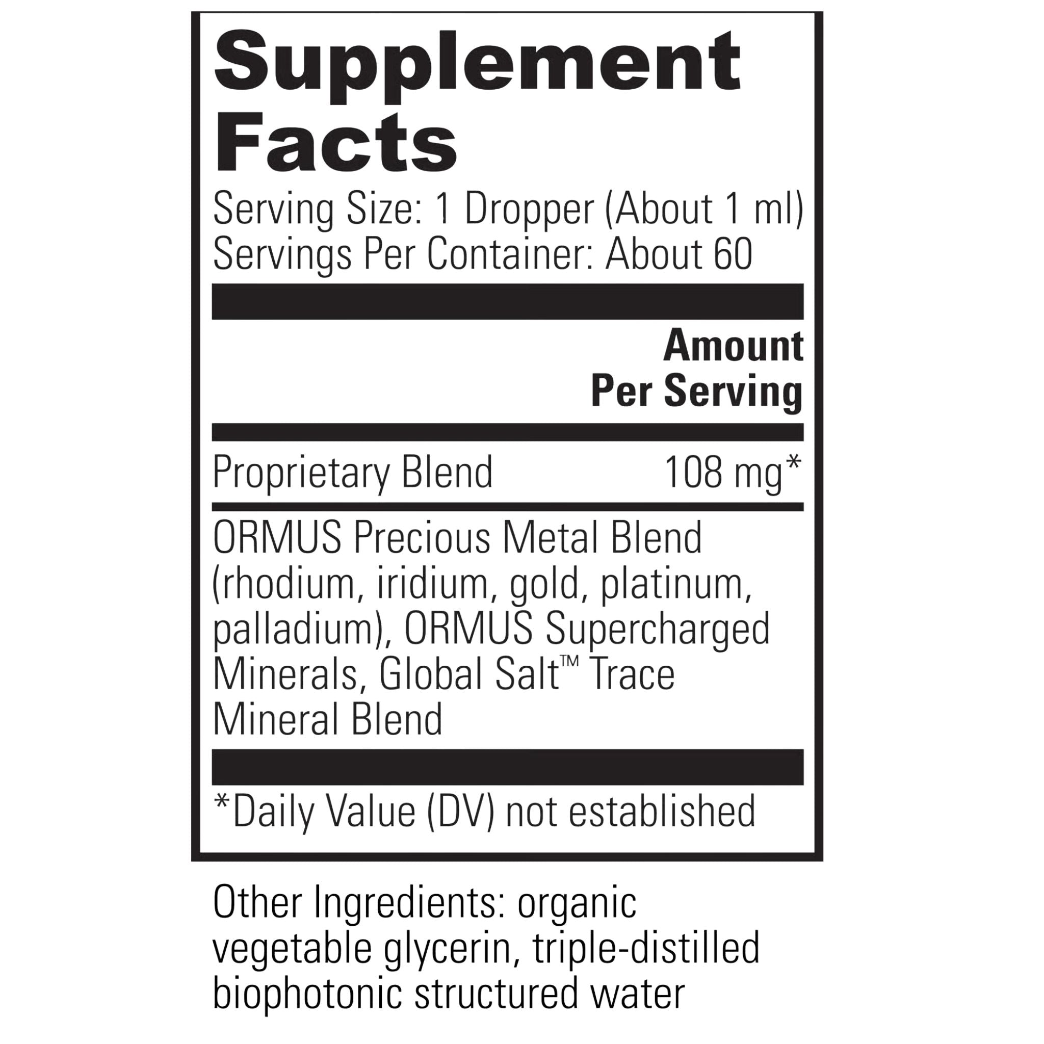 ORMUS Precious Metal Blend (rhodium, gold, platinum, palladium), ORMUS Supercharged Minerals, Global Salt Trace Mineral Blend