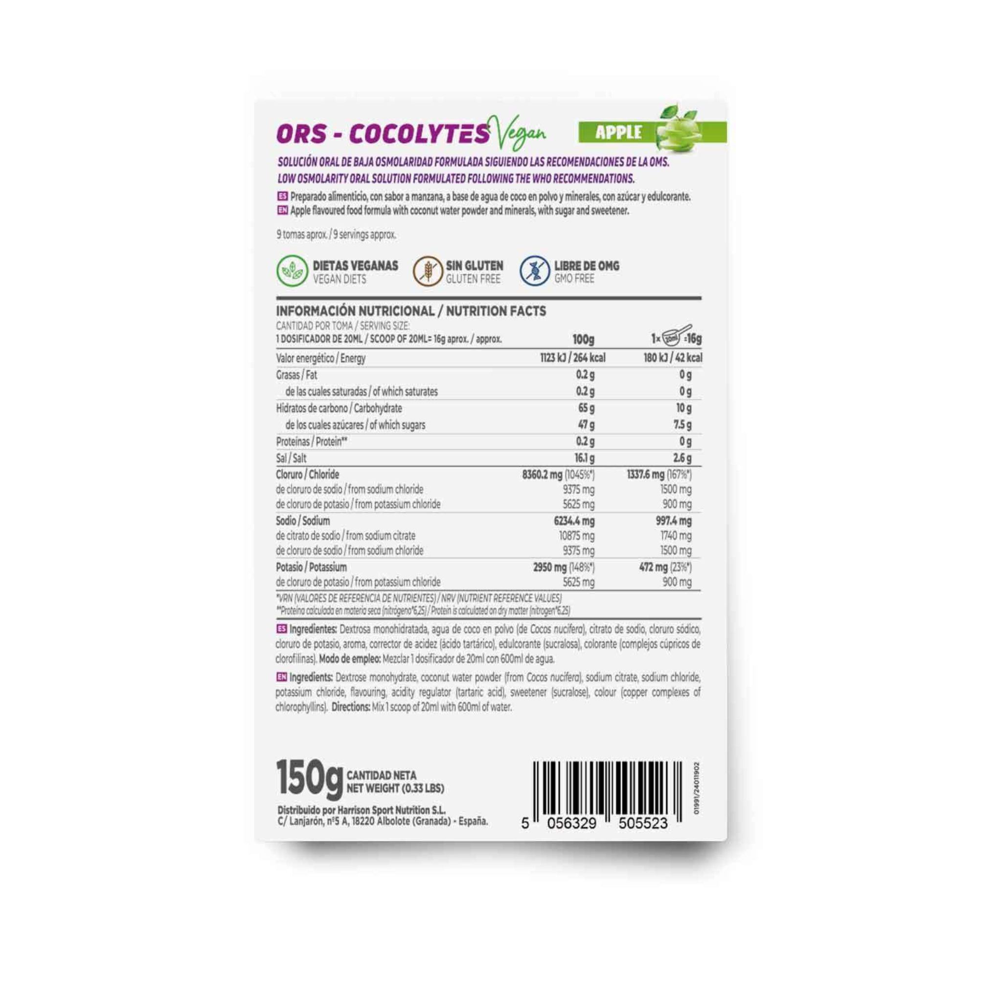 Dextrose monohydrate, coconut water powder (from Cocos nucifera), sodium citrate, sodium chloride, potassium chloride, flavouring, acidity regulator (tartaric acid), sweetener (sucralose), colour (copper complexes of chlorophyllins).