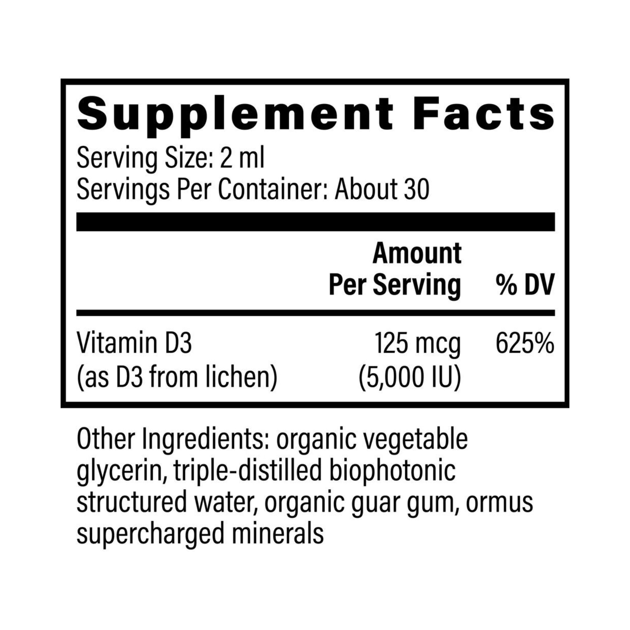 Other Ingredients: organic vegetable glycerin, triple-distilled biophotonic structured water, organic guar gum, ormus supercharged minerals.