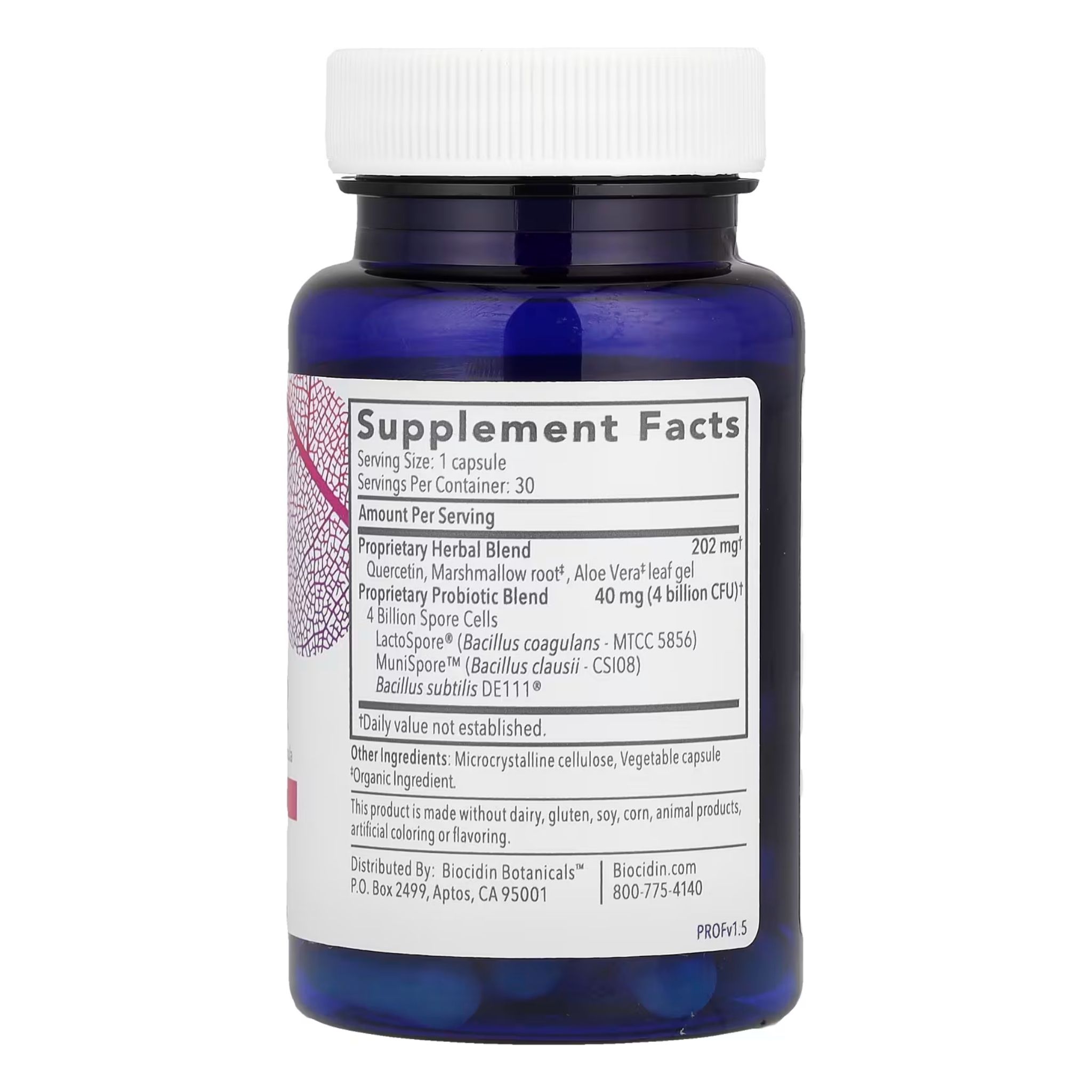 Quercetin, Marshmallow root‡, Aloe Vera* leaf gel, 4 Billion Spore Cells: LactoSpore® (Bacillus coagulans – MTCC 5856), MuniSpore™ (Bacillus clausii – CSI08), Bacillus subtilis DE111®
