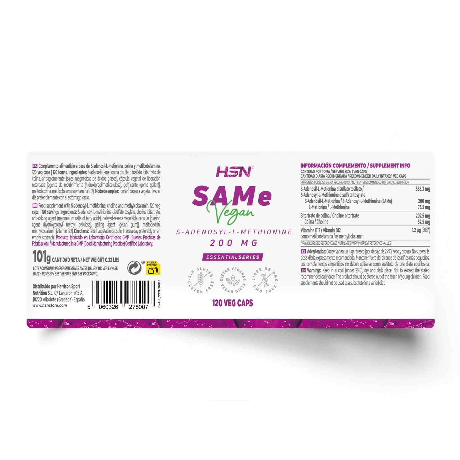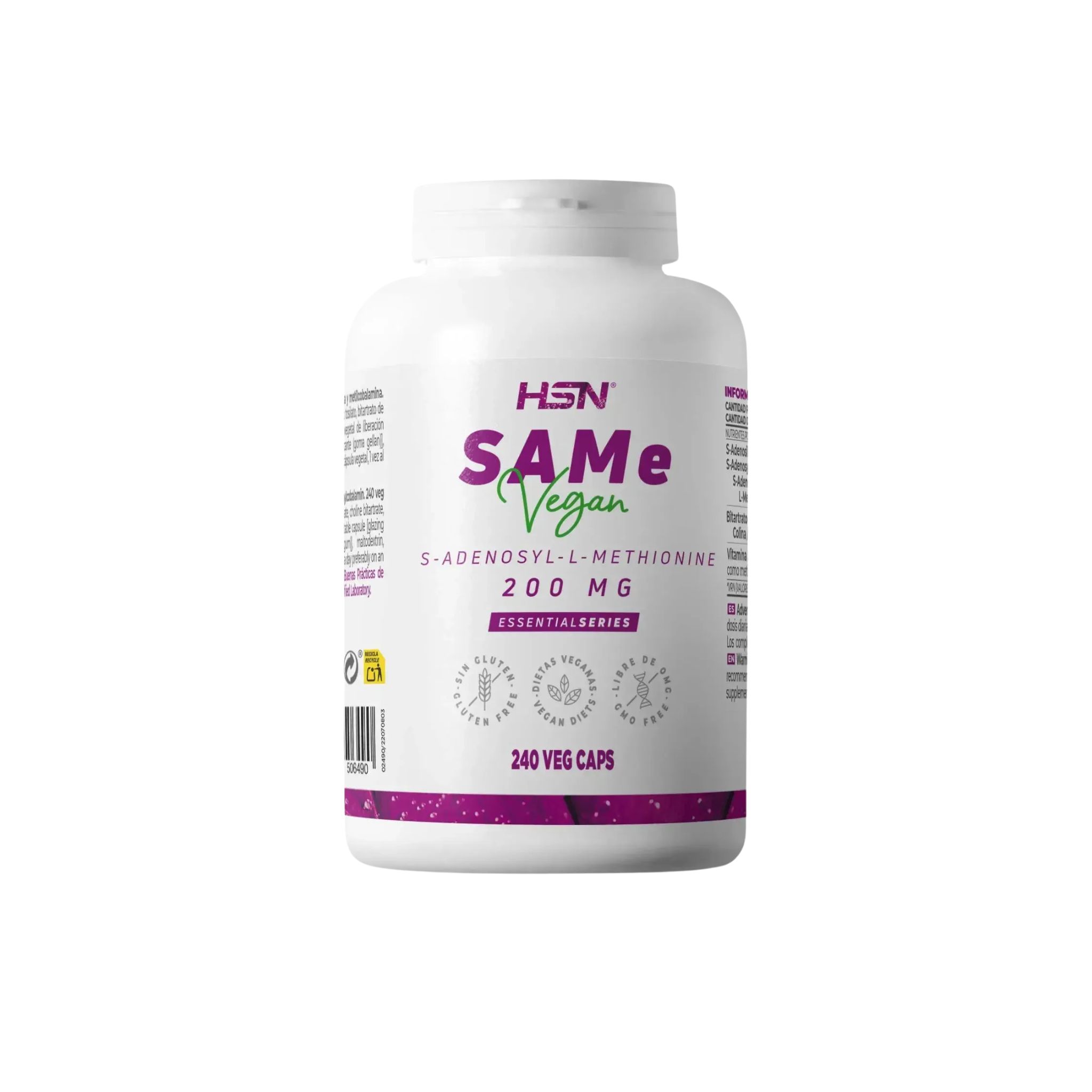 SAMe 200mg is a food supplement in vegetable capsules, combining S-adenosyl-L-methionine (SAMe), choline bitartrate, vitamin C, vitamin B12, and copper. Vitamin B12 contributes to normal homocysteine metabolism, while choline helps maintain normal liver function. SAMe, an amino acid bound to a nucleoside, is stabilized with patented DRCaps® to protect it from pH changes. The capsules are free from animal-derived ingredients, making SAMe 200mg fully suitable for vegetarian and vegan diets.