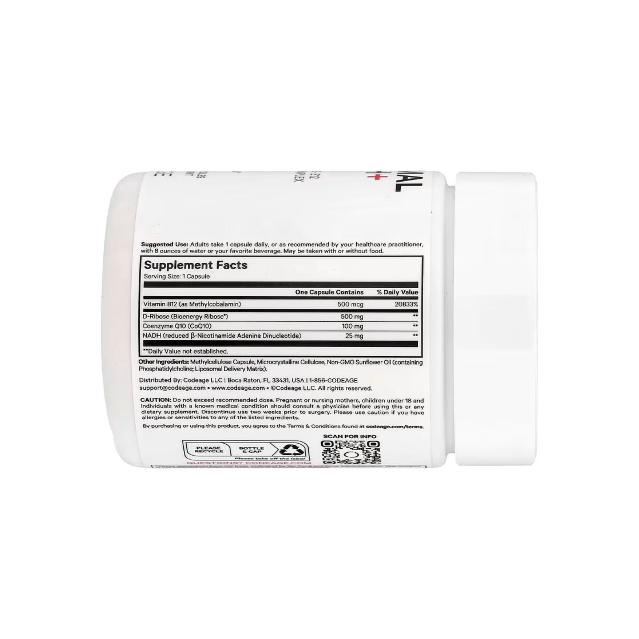 Vitamin B12 (as Methylcobalamin), D-Ribose (Bioenergy Ribose®), Coenzyme Q10 (CoQ10), NADH (reduced β-Nicotinamide Adenine Dinucleotide).