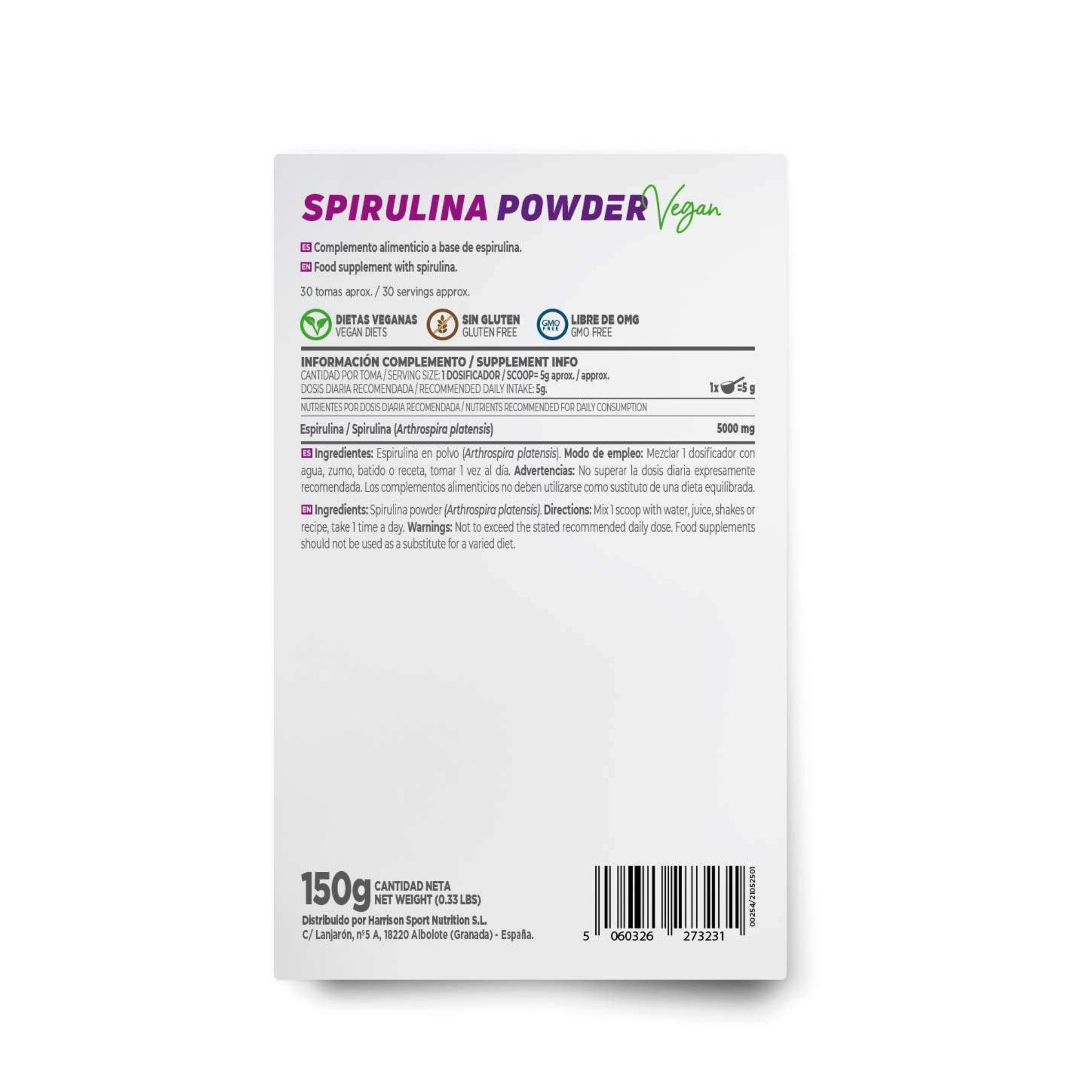 Spirulina Powder – Mix 1 scoop of 5ml (approx. 5g) with water, juice, smoothie or recipe, take 1 time a day.