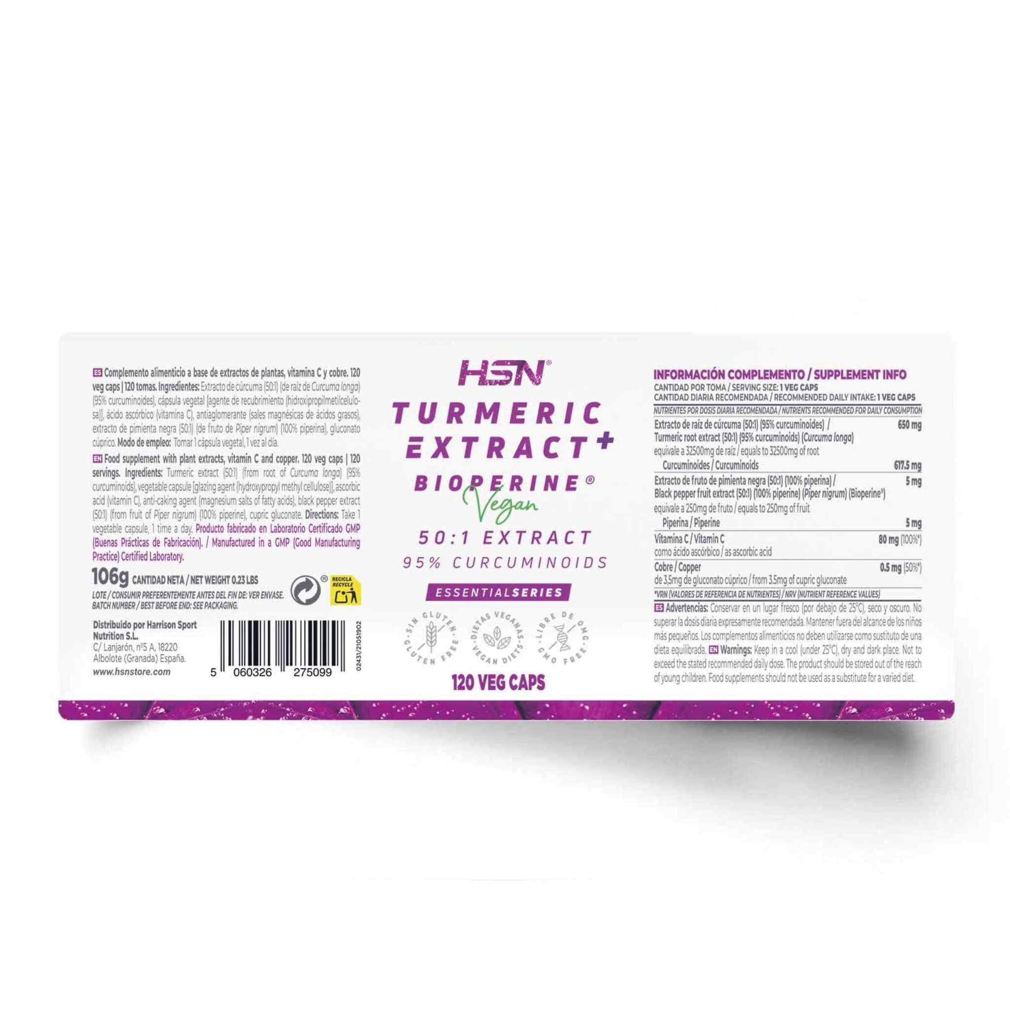Turmeric extract (50:1, from Curcuma longa root, 95% curcuminoids), vegetable capsule [glazing agent (hydroxypropyl methyl cellulose)], ascorbic acid (vitamin C), anti-caking agent (magnesium salts of fatty acids), black pepper extract (50:1, from Piper nigrum fruit, 100% piperine), cupric gluconate.