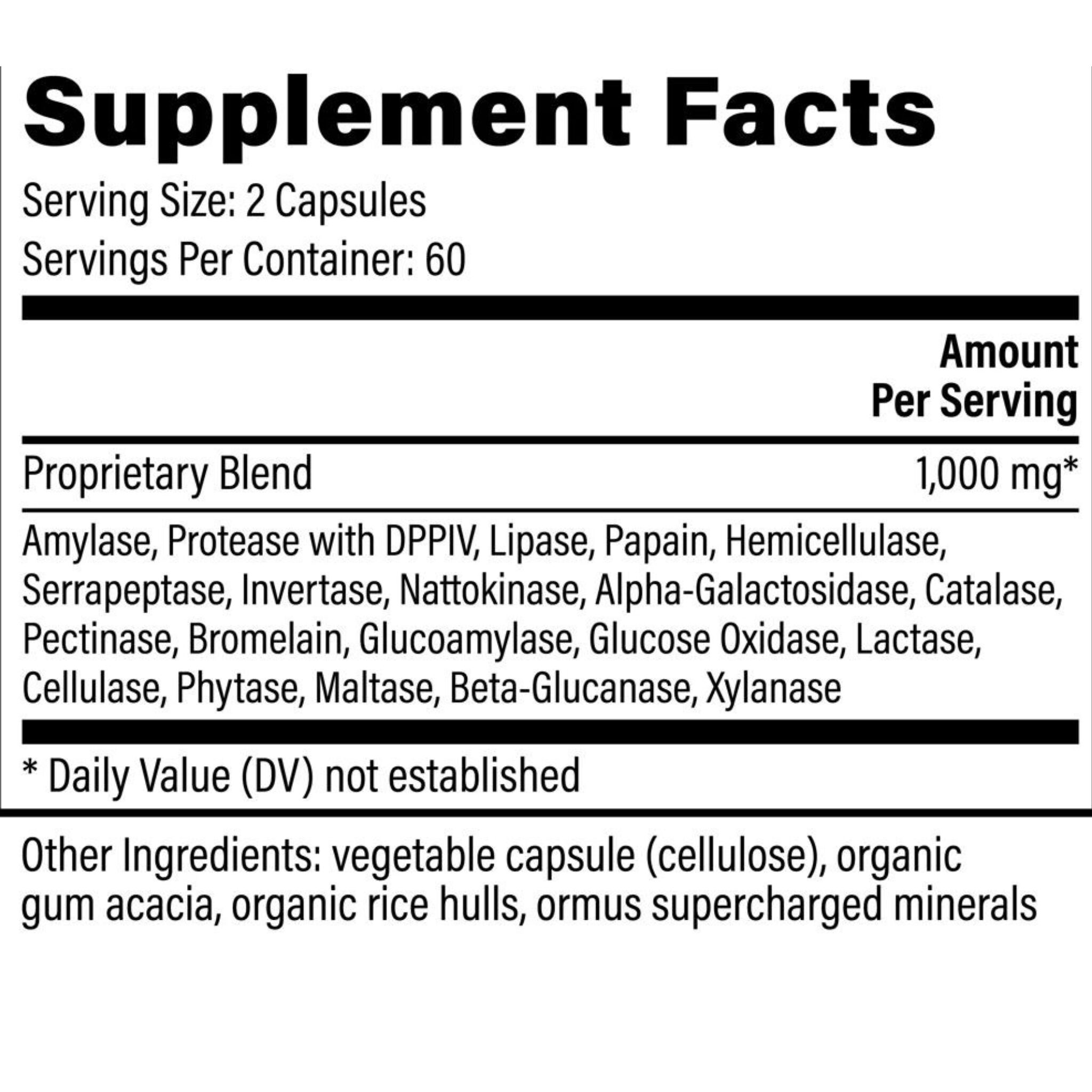 Ultimate Enzymes (formerly VeganZyme®) is an advanced, full-spectrum blend of digestive and systemic enzymes designed to support smooth digestion and overall bodily balance. Its robust formula helps break down proteins, carbohydrates, and fats, making nutrient absorption easier while reducing bloating, gas, and digestive discomfort. Protease and other systemic enzymes assist in neutralizing harmful proteins and may help reduce inflammation, supporting the immune system and promoting overall vitality. This comprehensive enzyme blend encourages efficient digestive function and helps the body operate at its best.