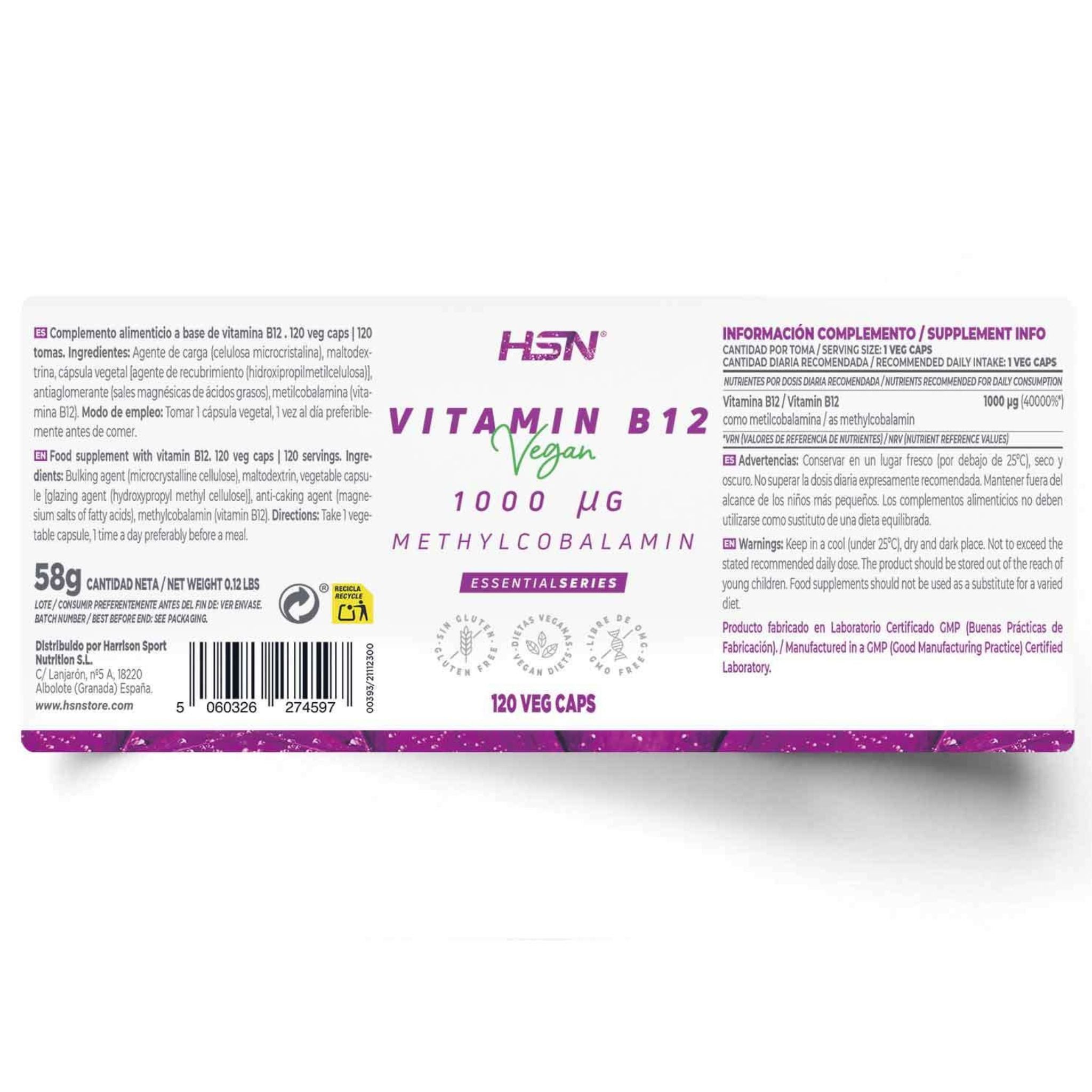 Bulking agent (microcrystalline cellulose), maltodextrin, vegetable capsule [glazing agent (hydroxypropyl methyl cellulose)], anti-caking agent (magnesium salts of fatty acids), cyanocobalamin (Vitamin B12, obtained by fermentation of Pseudomonas denitrificans).