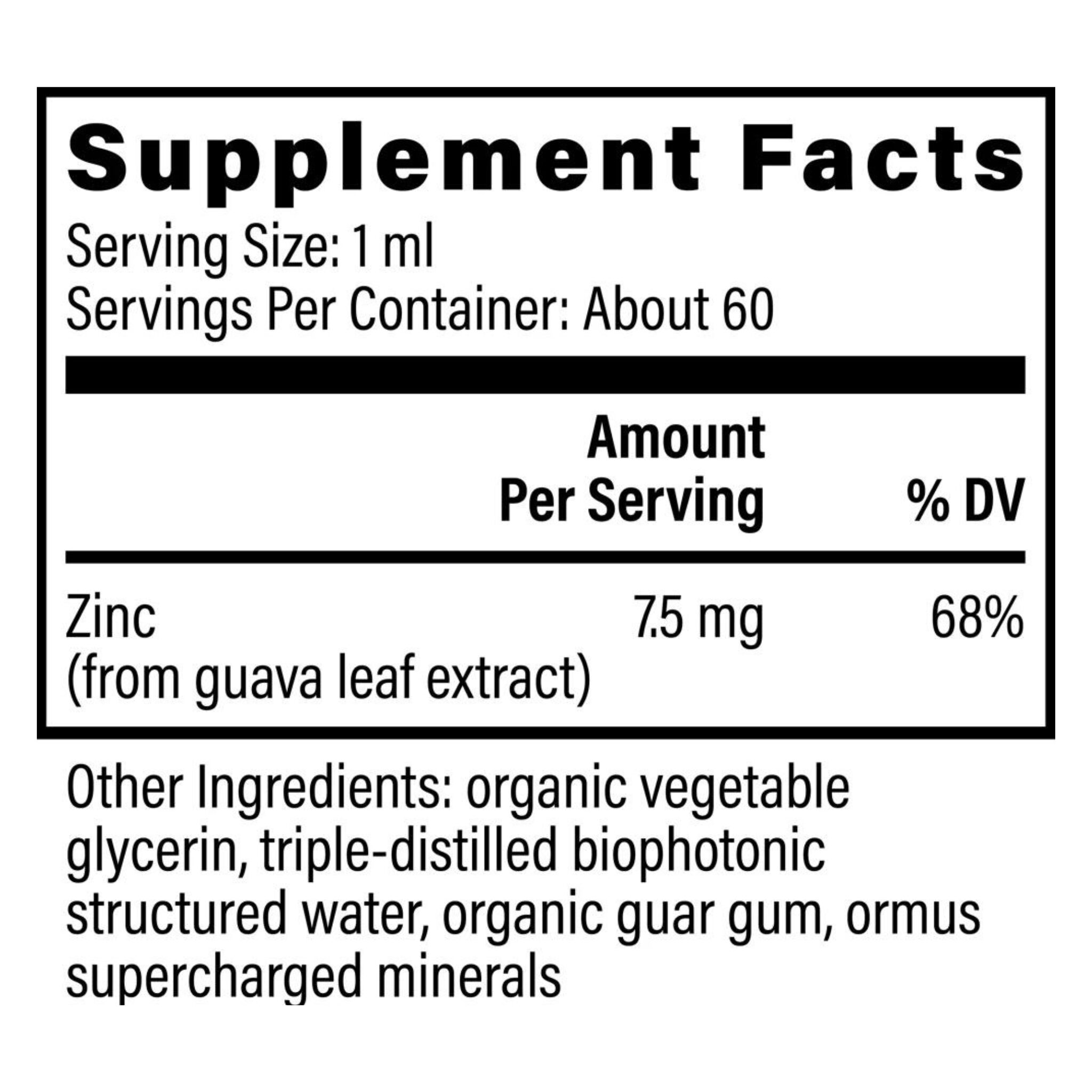 Zinc is an essential mineral that plays a vital role in supporting the immune system, promoting hormone balance, and encouraging healthy cell growth and development. This certified organic liquid formula sources zinc from guava leaves and is enhanced with Energized Trace Minerals for superior bioavailability, ensuring your body absorbs and uses it effectively for overall wellness and vitality.